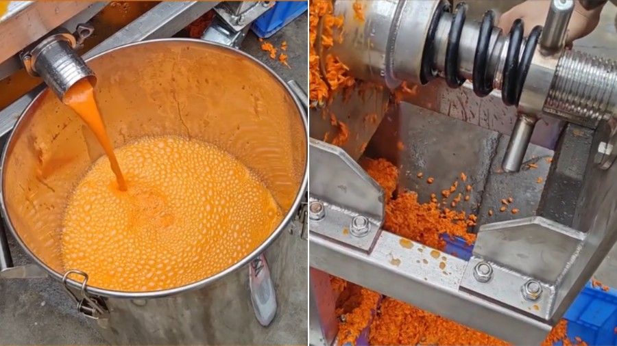 We used a small screw dehydrator to test the machine's performance on seabuckthorn juice. The machine performed exceptionally well, with a high juice yield, smooth pulp discharge, no clogging, and low moisture content in the extracted pulp. The customer was very satisfied with the results.
