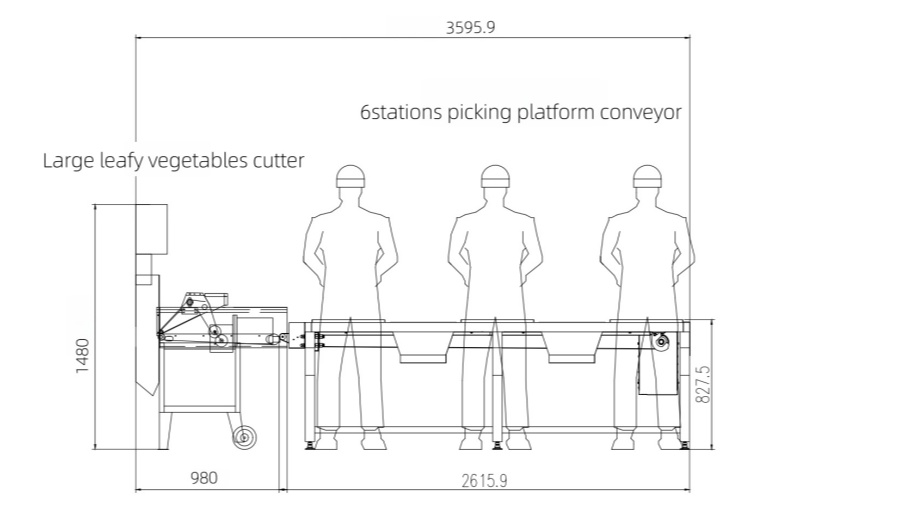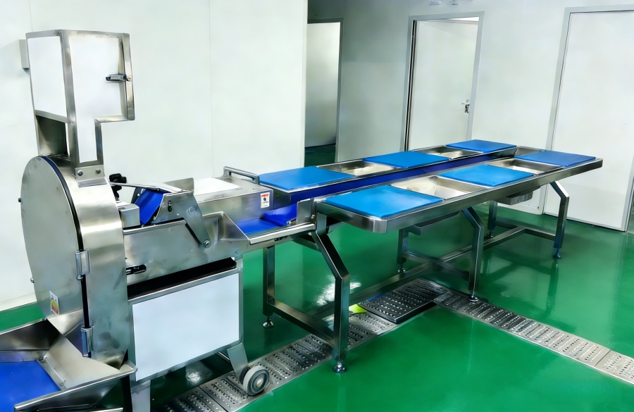 The new multi-functional vegetable cutter can also be used in conjunction with a 6-10 station manual sorting and conveyor platform to meet the commercial needs of central kitchens for cleaning and cutting vegetables.