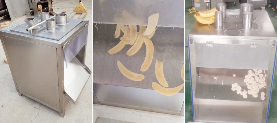 1) Banana Slicer: Slices peeled bananas into evenly thick, regularly shaped slices. The slicer features sharp blades, high speed, and high efficiency; the slice thickness is adjustable.