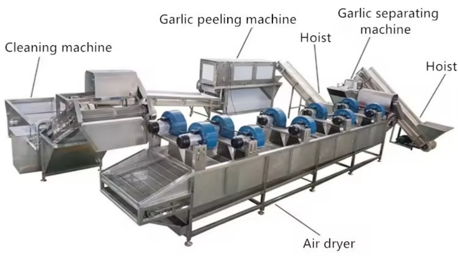 Air drying machine: After washing, the garlic cloves will have moisture on their surface. Use an air dryer to dry the surface moisture of the garlic cloves to facilitate subsequent packaging and storage.
