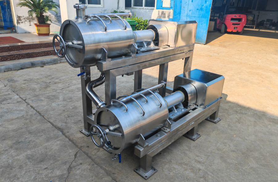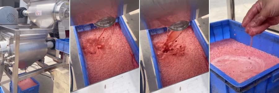 For berries and vegetables, the process is similar, but only some small peel pieces or smaller fruit pieces are discharged from the pulp outlet. Some fruit may be completely broken down and discharged simultaneously through the pulp outlet.