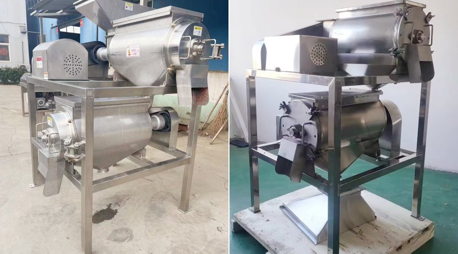 For berries or vegetables, the working process is similar, but some small peels or smaller fruits are expelled from the slag port, some may be completely broken and discharged.